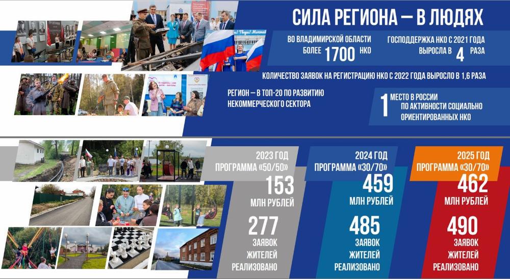 «Такие высокие результаты стали возможны благодаря усилиям Правительства Владимирской области, Губернатора, институтов гражданского общества, а также стараниям жителей и системной господдержке. С 2021 года объём грантов для НКО увеличен в четыре раза. Это хороший задел на работу в 2026 году», – считает председатель Общественной палаты области Анатолий Аннин.
