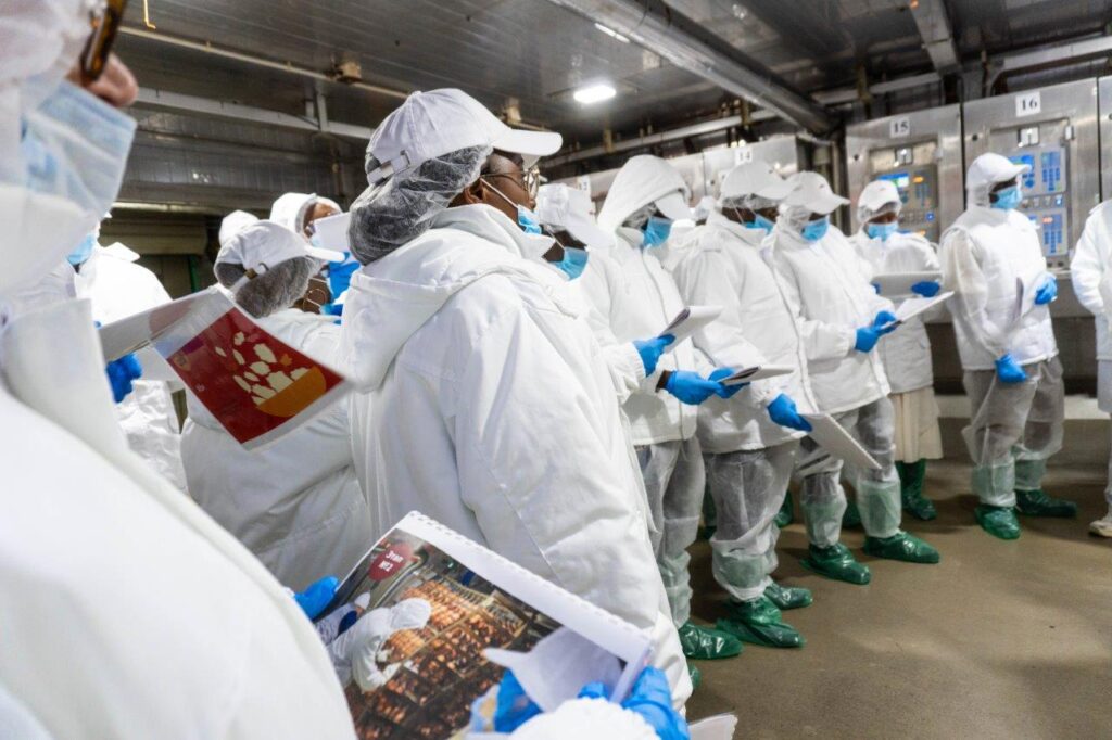 9 апреля 19 специалистов в сфере управления рынком труда и занятостью из двух африканских государств посетили производственную площадку завода «Стародворские колбасы» и центральный складской комплекс Аби. В ходе визита гостям рассказали о работе предприятия, а также поделились опытом организации охраны труда и внедрения современных инструментов профилактики производственного травматизма.
