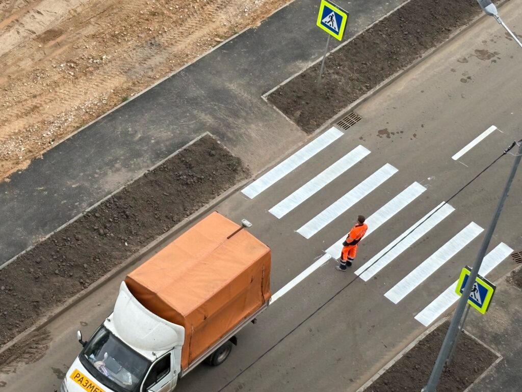 На улице Маршала Устинова открыли движение. Подрядчик ГУП ДСУ-3 заасфальтировал проезжую часть и тротуары.