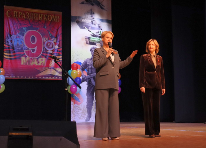 Концерт на главной сцене дворца культуры торжественно открыли заместитель главы администрации по социальным вопросам Екатерина Ульянова и председатель Совета народных депутатов Елена Фомина. Представители руководства города поздравили всех присутствующих с приближающимся Днём Победы.